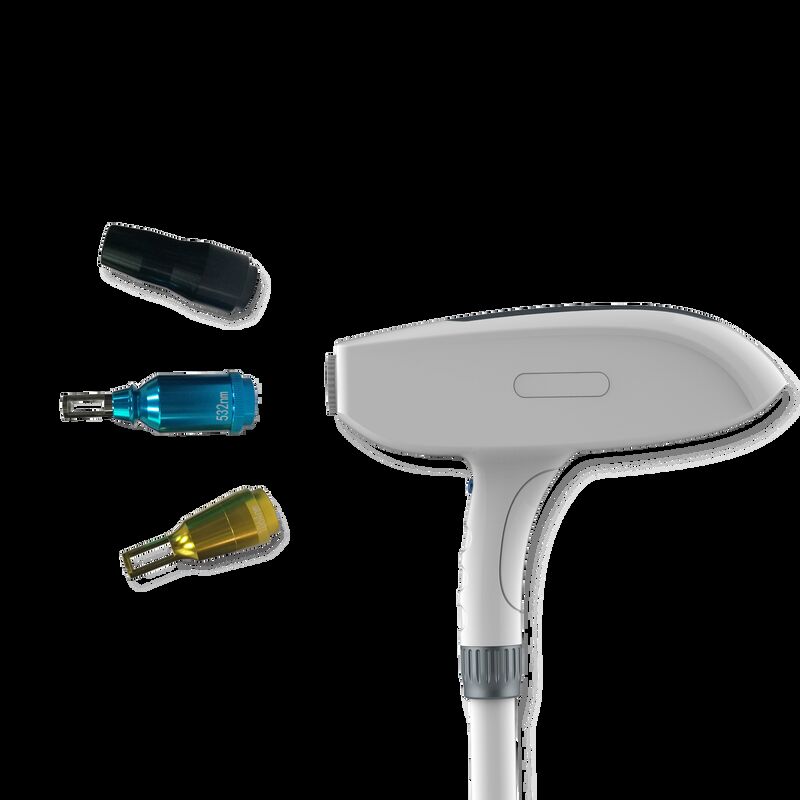 Laser memiliki dua ujung perawatan yang dapat dipertukarkan, masing-masing menawarkan panjang gelombang yang berbeda: 1064 nm & 532nm.